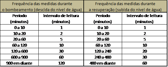 Para poços com vazões acima de 5.000lts/h faz-se ainda um teste escalonado após o teste de vazão máxima; este teste é feito com bombeamentos por períodos menores a vazões menores sucessivamente.